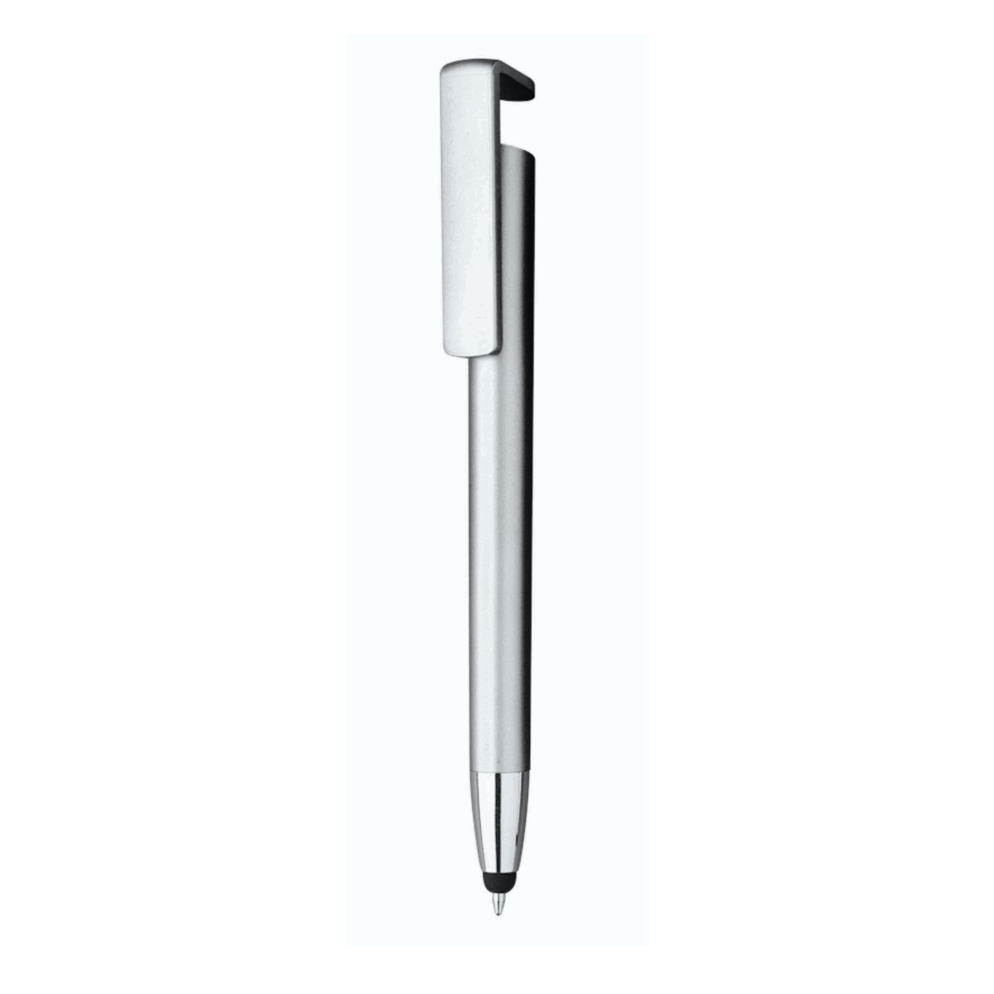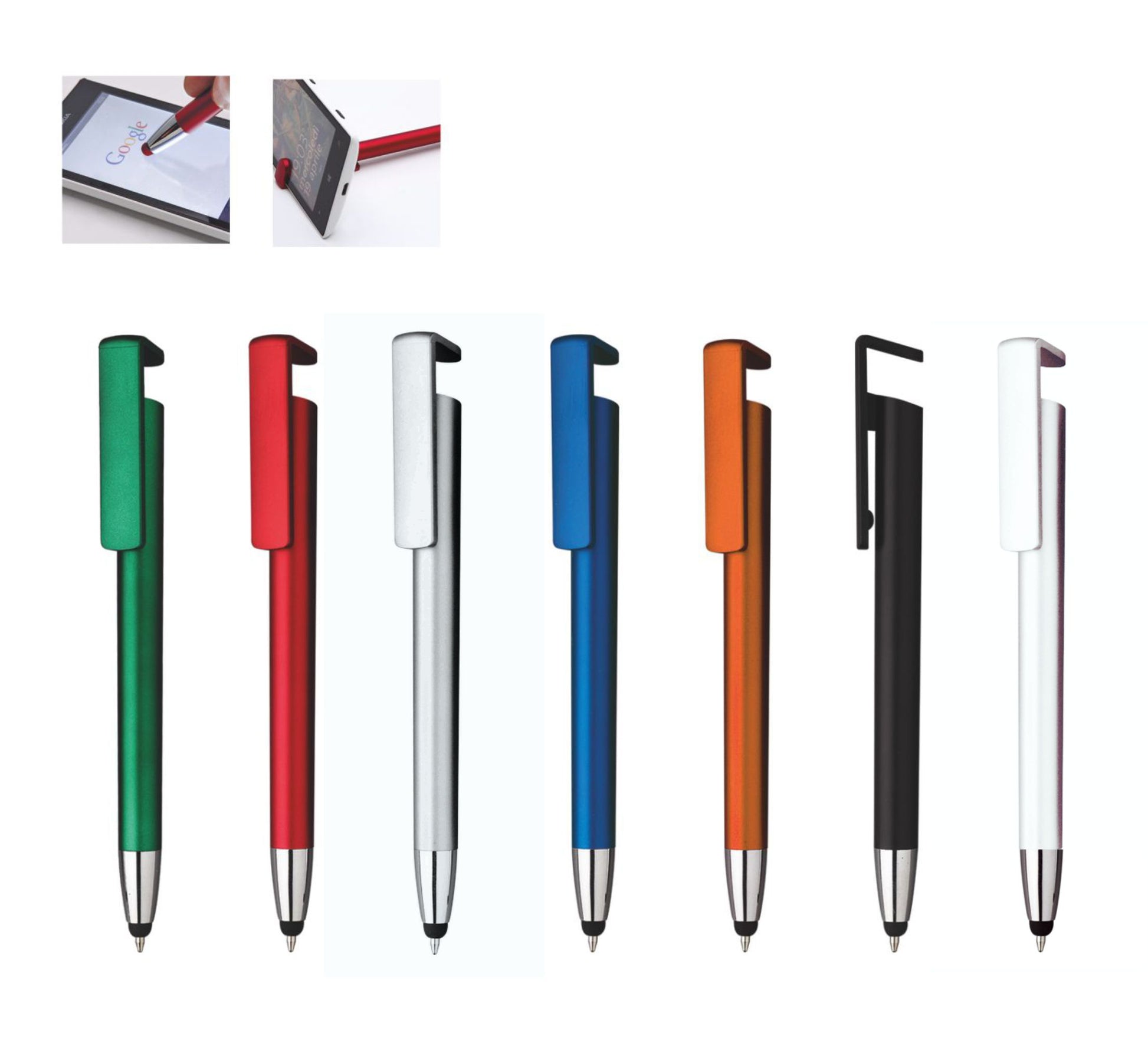 Penna sfera a scatto touch in plastica. Clip funzionalità supporto cellulare. Fusto colorato. Refill nero.