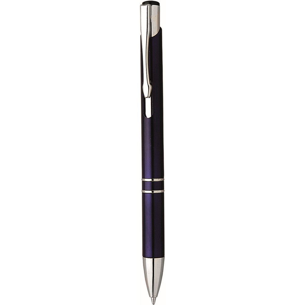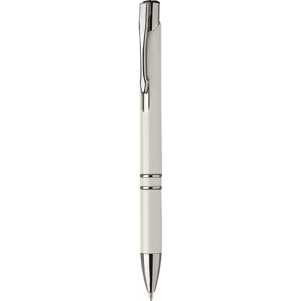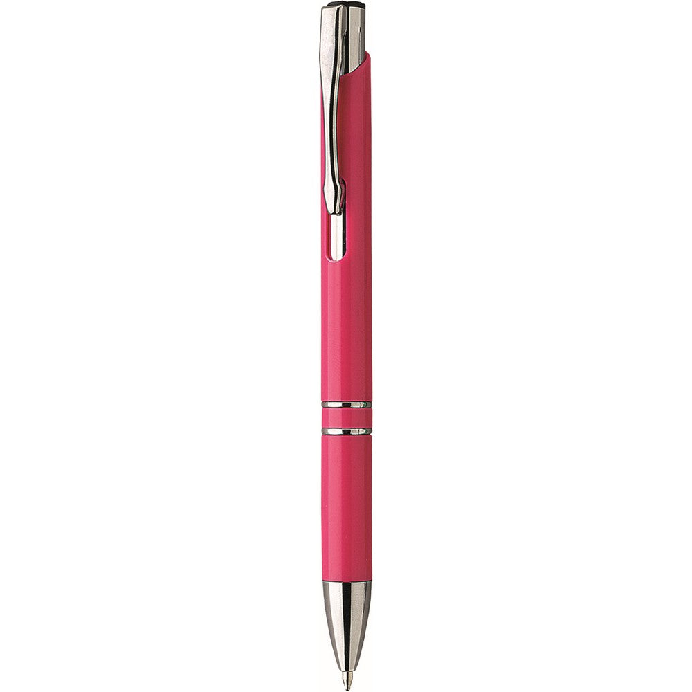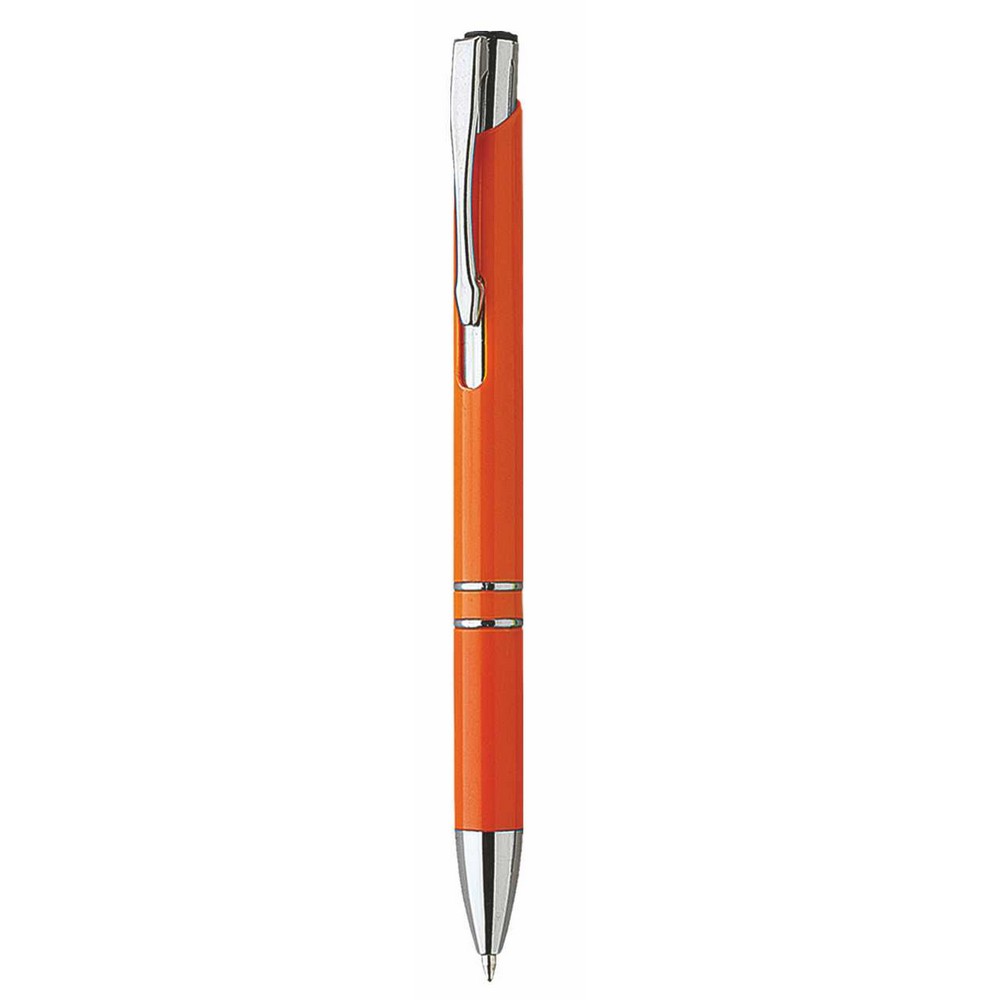 Penna sfera a scatto in plastica con clip metallo. Fusto colorato particolari silver. Refill nero. Colori: vedi catalogo/sito.