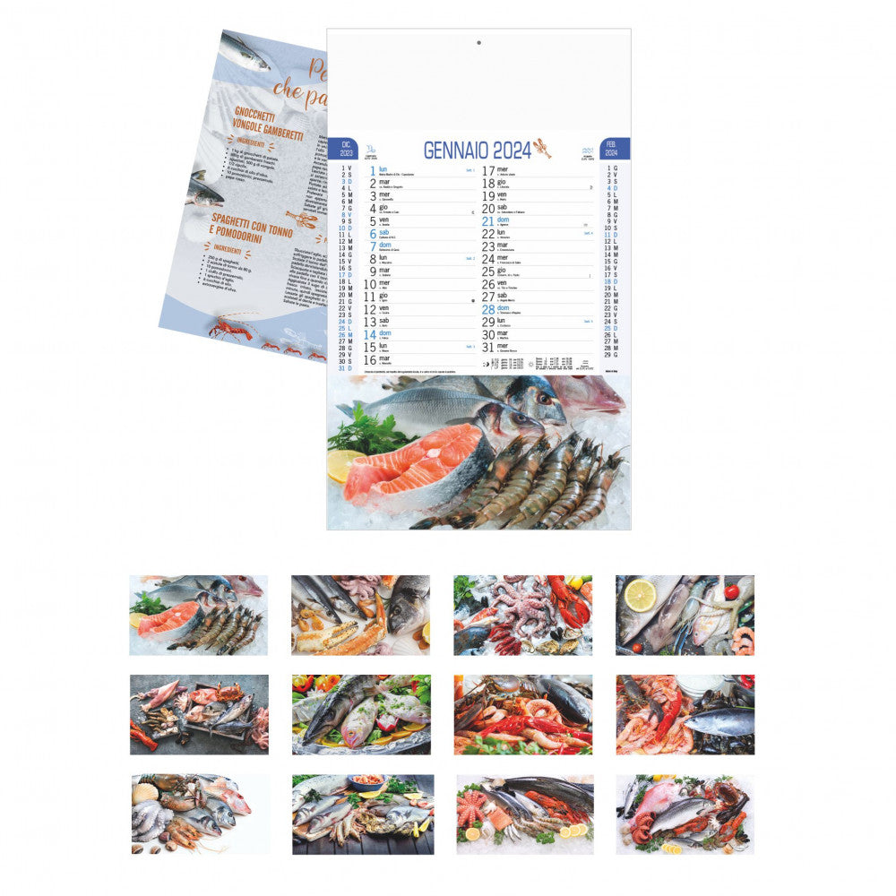 Mensile 12 fogli f.to cm.28,8 x 47 in carta patinata lucida gr.75, allestimento Tecnoblock.