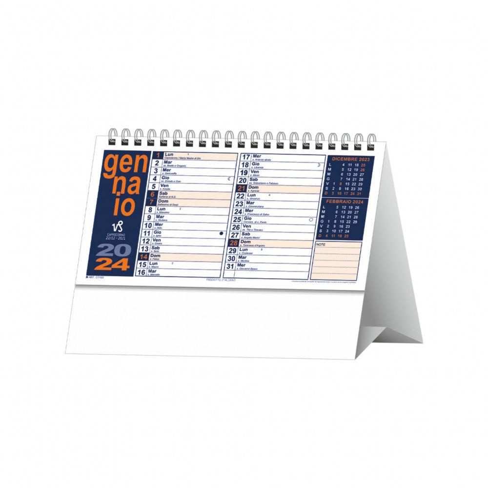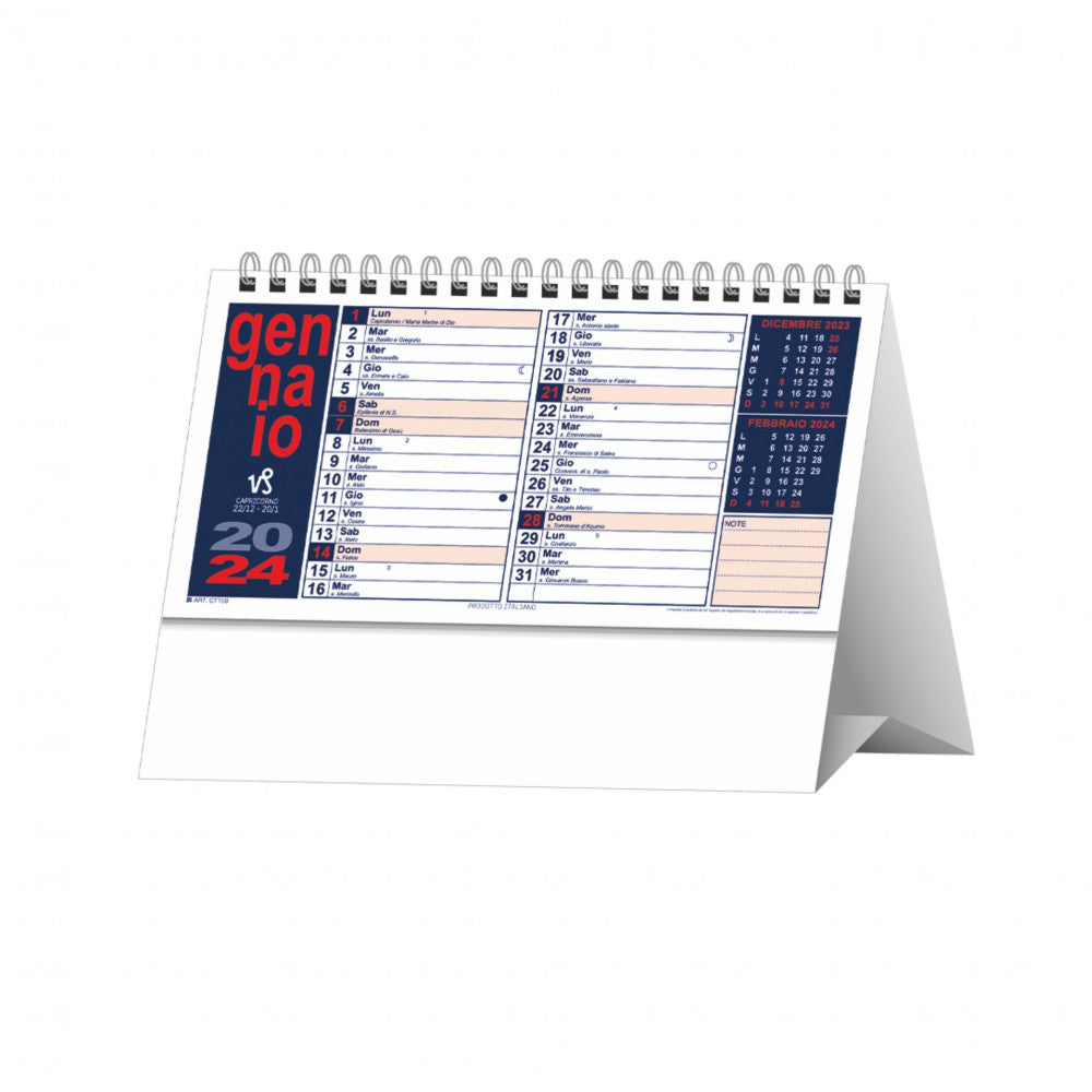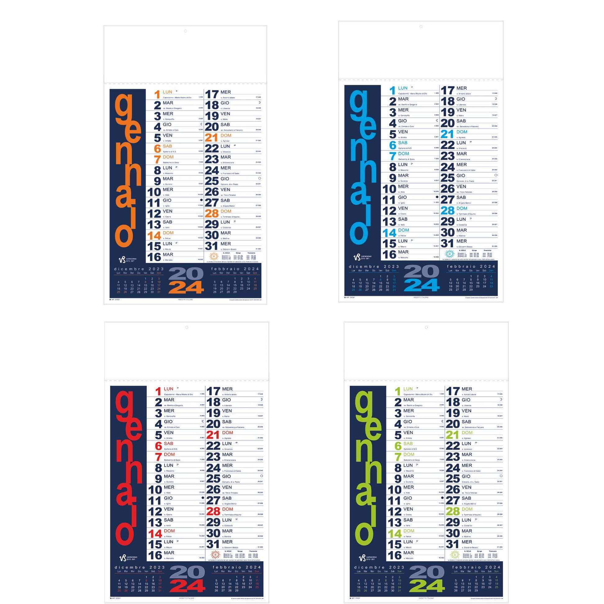 Calendario “Portoghese”. Trimestrale 12 fogli. Carta patinata. Dimensioni: cm 31x53, testata rinforzata cm 31x10.8. Imballo: 100