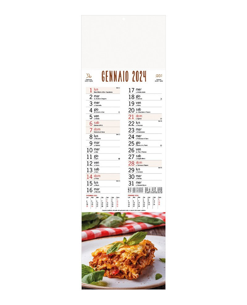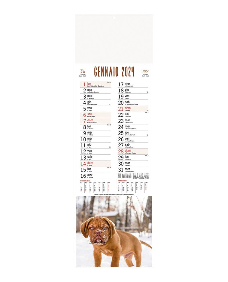 Mensile 12 fogli f.to cm.14 x 47 in carta patinata lucida gr.75, allestimento Tecnoblock.