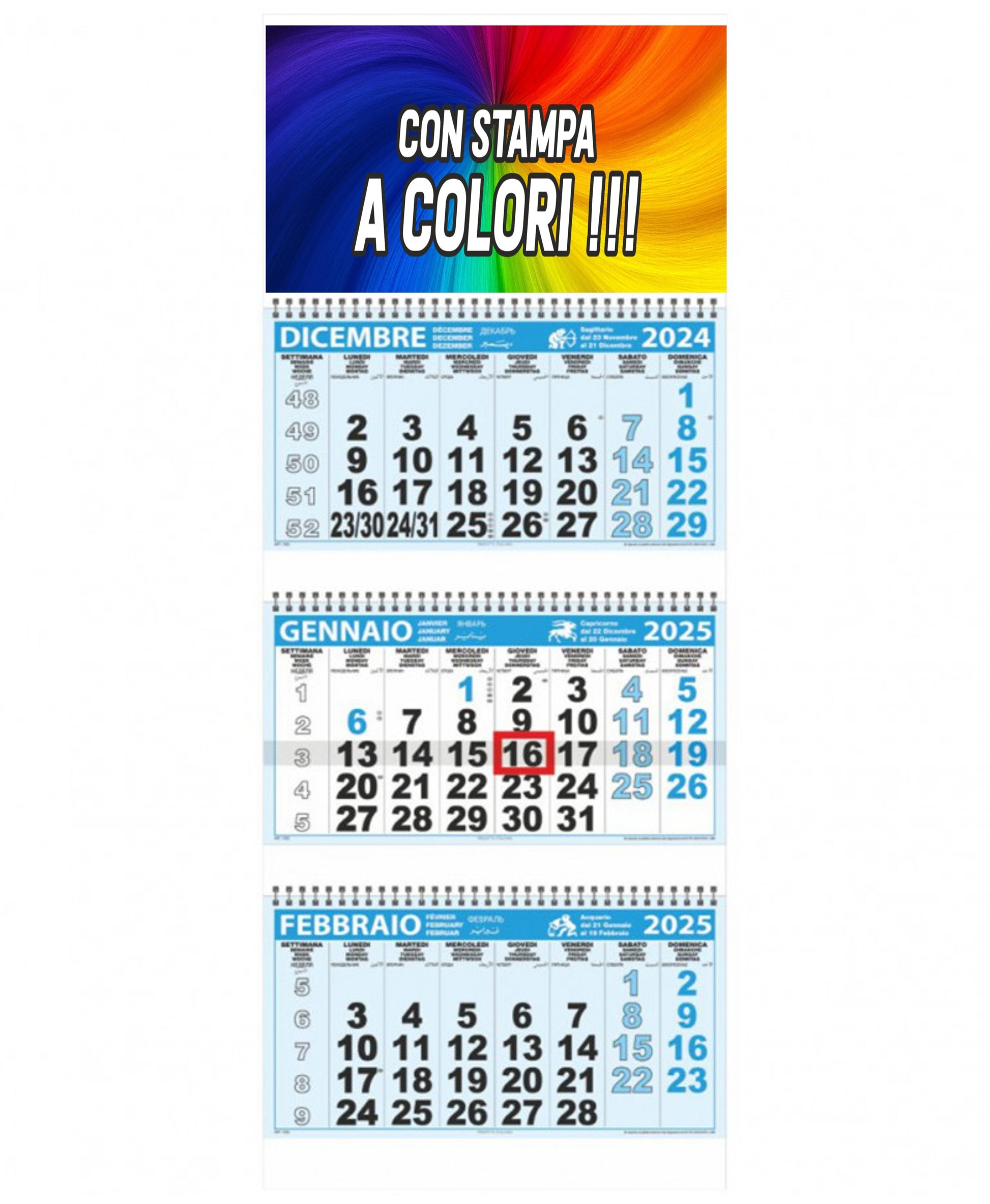 Calendario Trittico a 3 blocchi spiralati con supporto in cartone B/G 500g