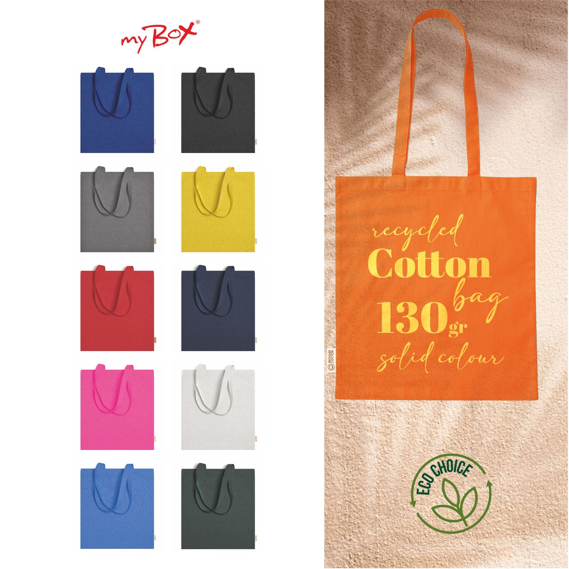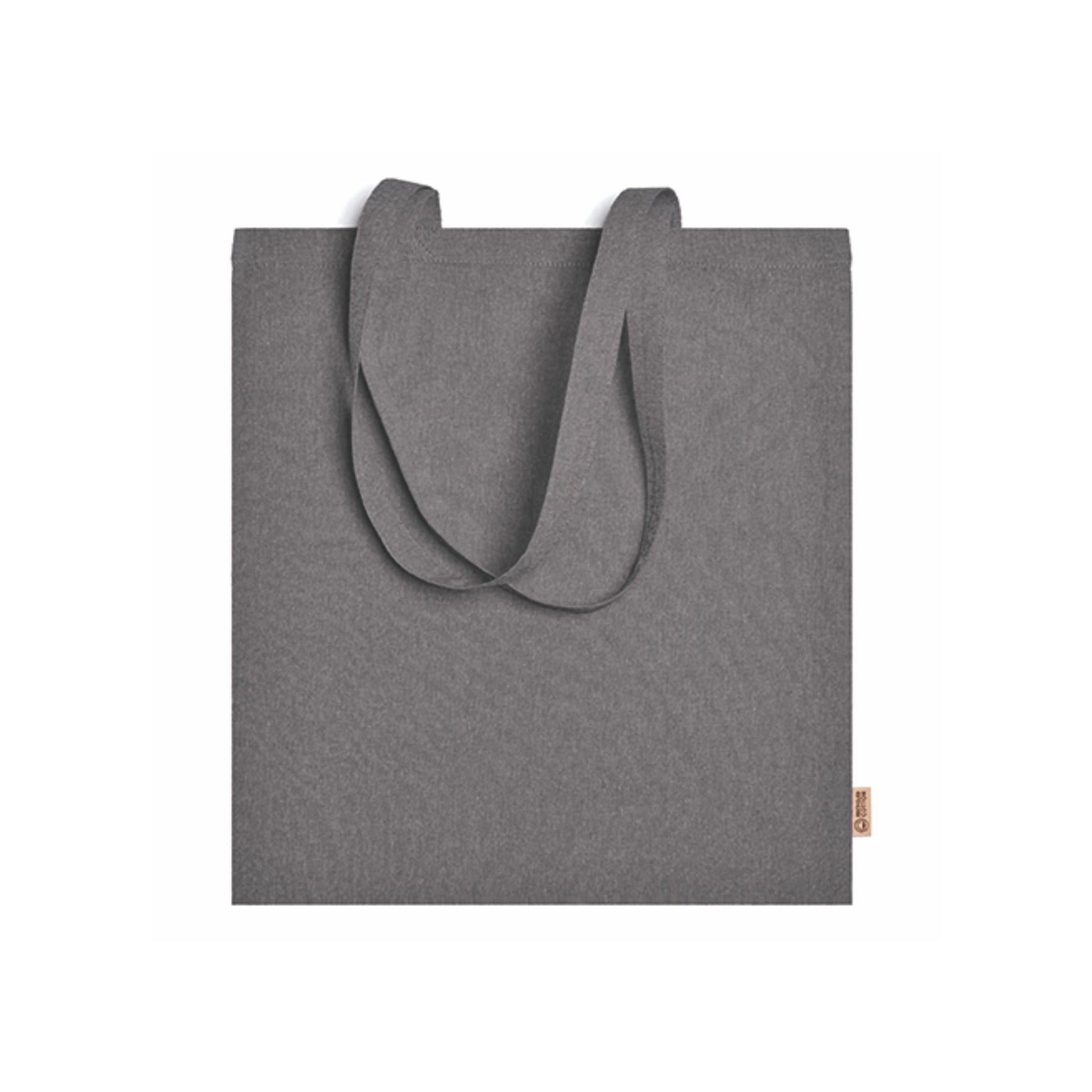 Borsa shopping in cotone riciclato 130 g/m² con manici lunghi cm 70. Dimensioni: cm 38x42 .