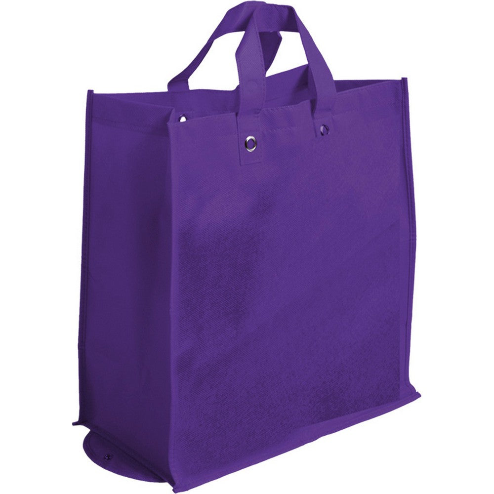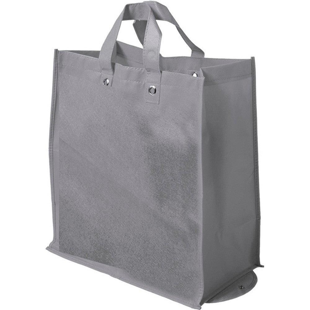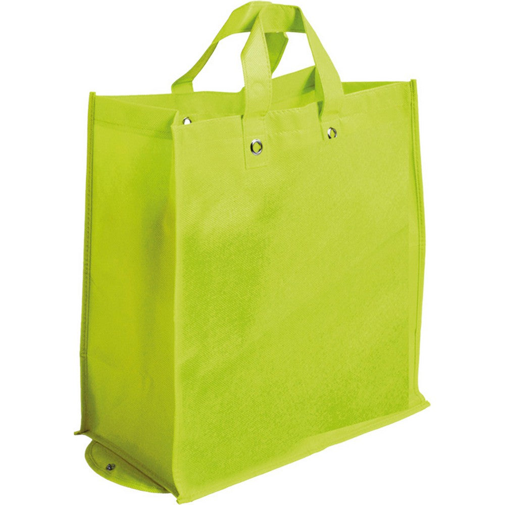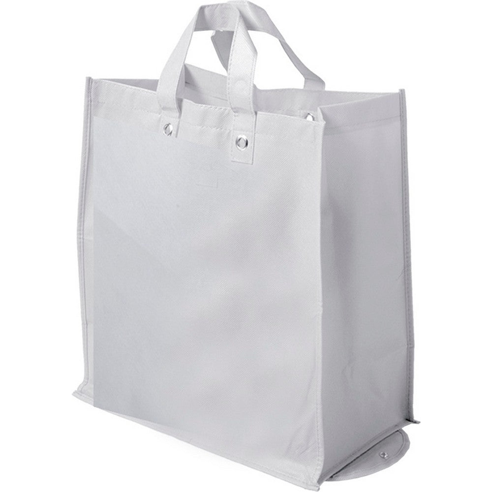 Borsa shopping in tnt. Cucita. Richiudibile su se stessa (cm. 20x20) con bottone. Manici (cm.3x34) Dimensioni cm.34x40x20