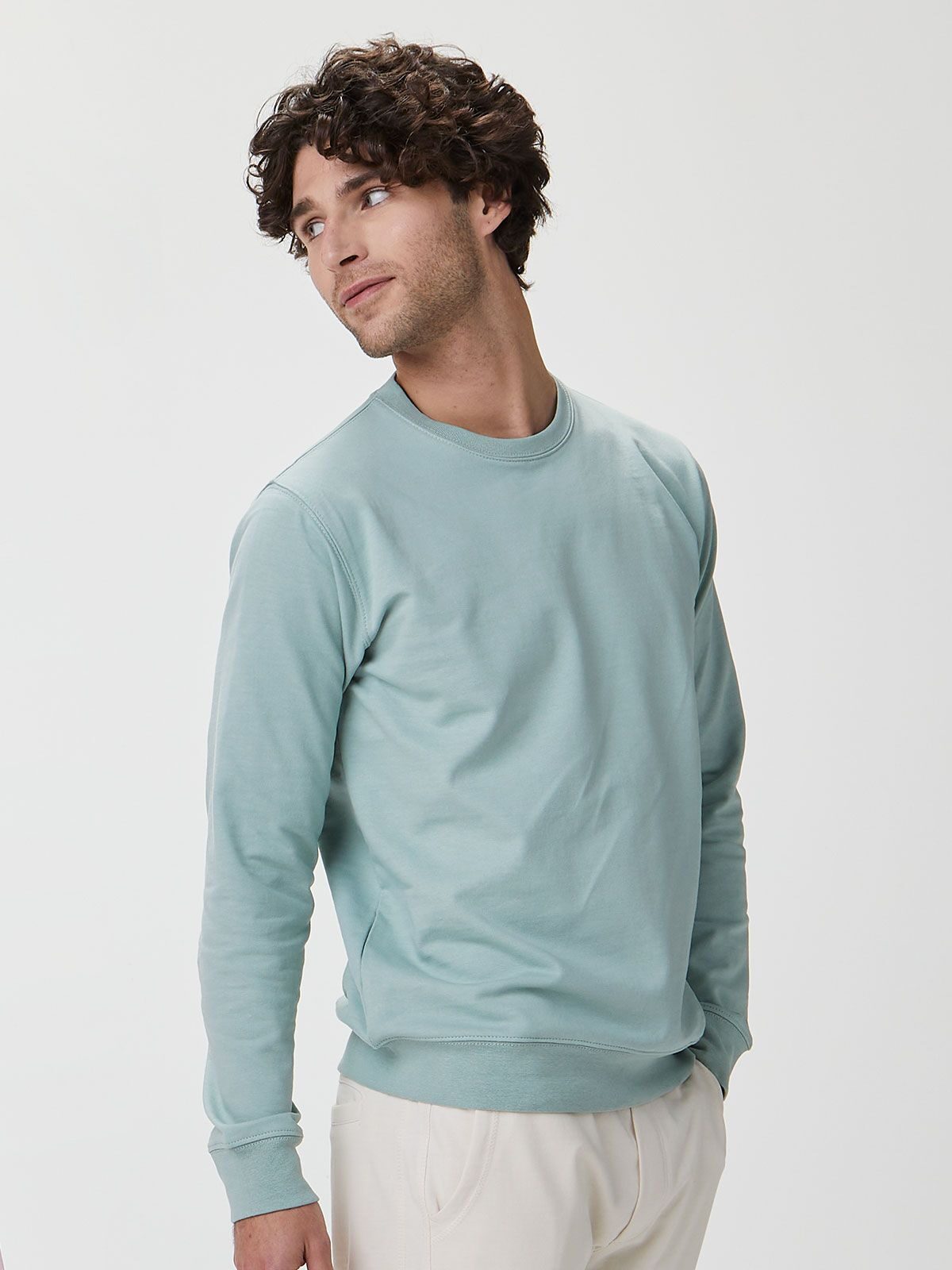 70% cotone 30% poliestere. Tessuto PST: interno in poliestere ed esterno 100% cotone. Felpa girocollo, felpata internamente. Collo, polsini e orlo inferiore in costina, rinforzo sul colletto, maniche set-in, struttura con cuciture laterali. Etichetta strappabile.