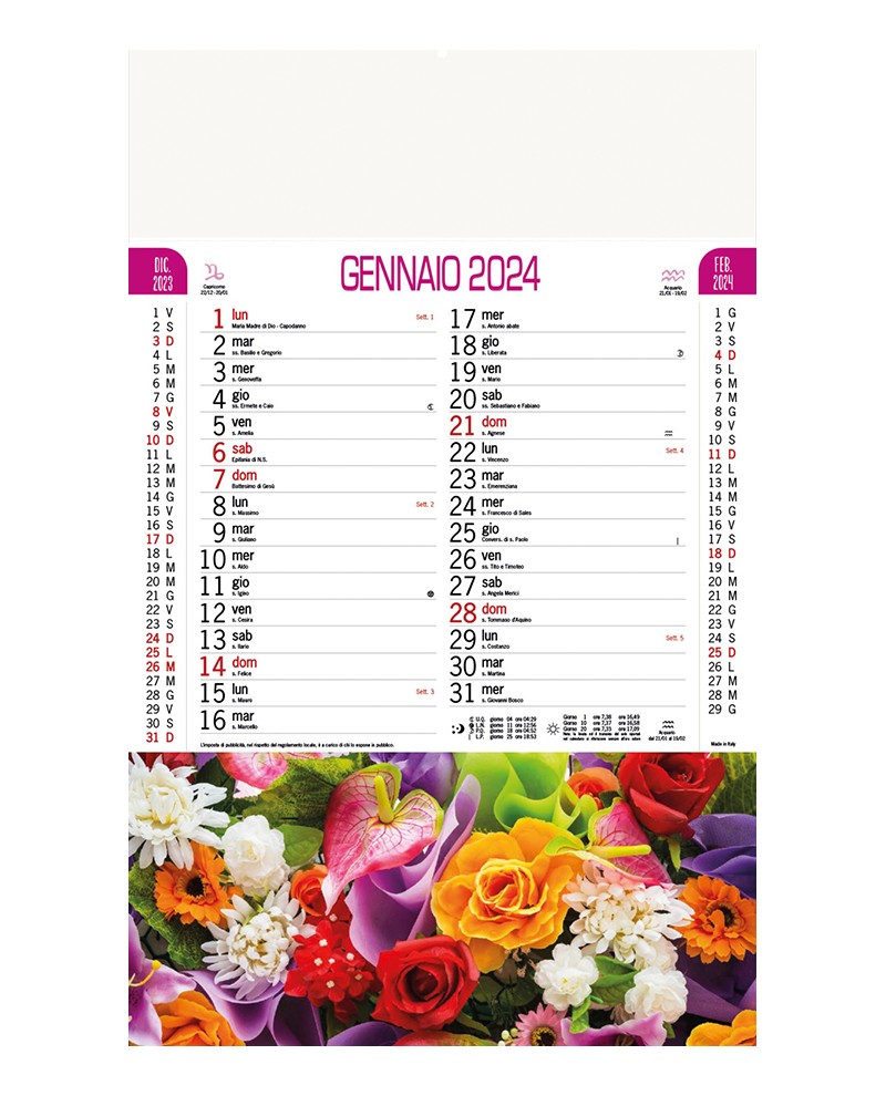 Mensile 12 fogli f.to cm.28,8 x 47 in carta patinata lucida gr.75, allestimento Tecnoblock.