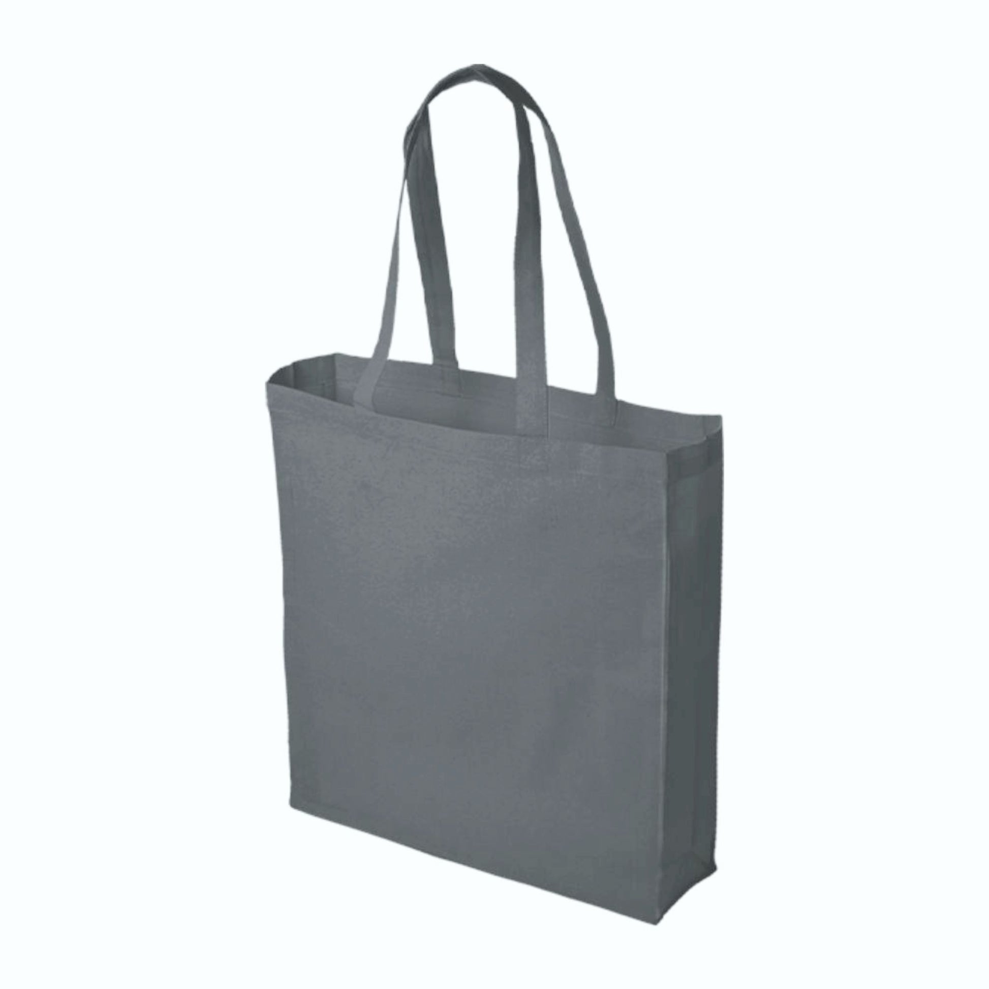 Borsa shopping in cotone riciclato 130 g/m² con manici lunghi cm 70. Dimensioni: cm 38x42x8. Imballo: 100pz.