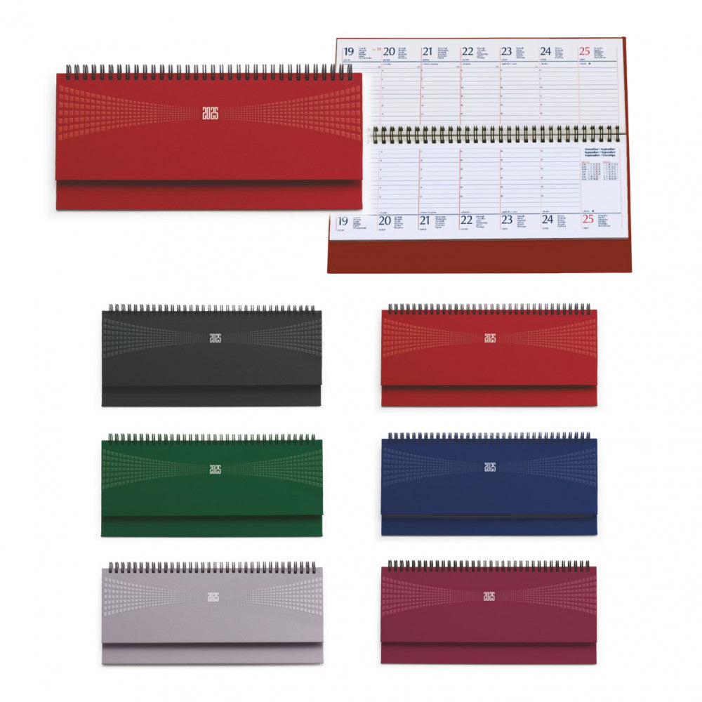 Planning spiralato in matra. 128 pagine. Carta usomano bianca 70 gr. Interno stampa 2 colori, datato. Colori: blu, verde, bordeaux, nero, rosso, grigio. Dimensioni cm 30x15 Imballo: 20xcolore